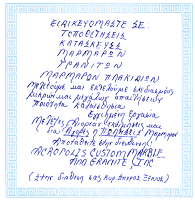 Our New Showroom at: #50 THF Blvd. Chesterfield, MO 63005 Tel: 636-532-4940 Fax: 636-5324950 email: ACROPMARBL@aol.com |